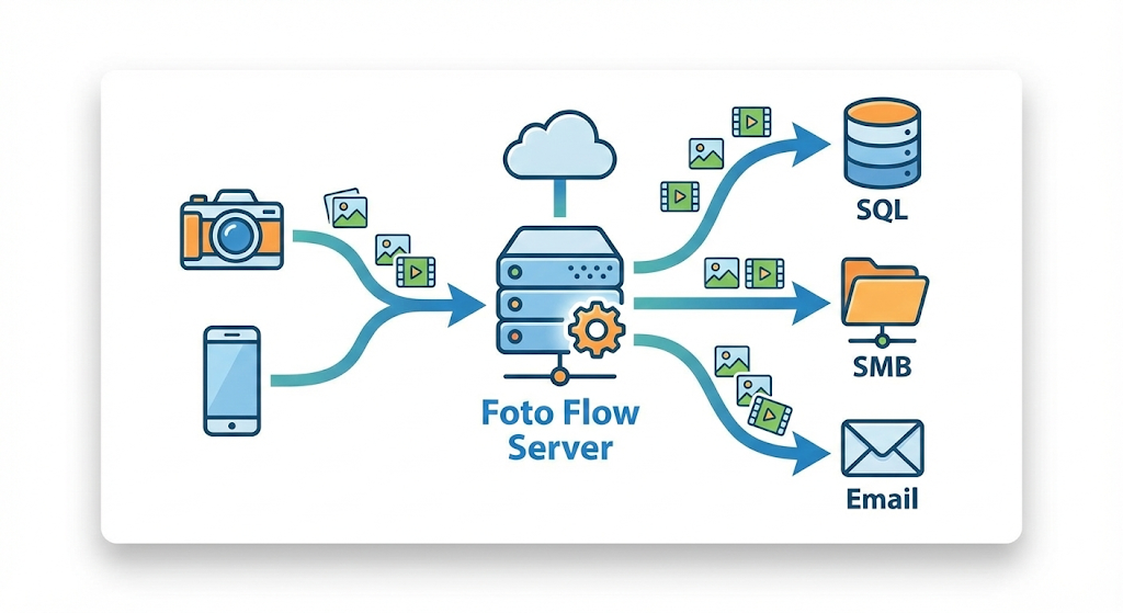Foto Flow non lavora nel vuoto. Si connette direttamente ai tuoi database aziendali (MySQL, etc.).